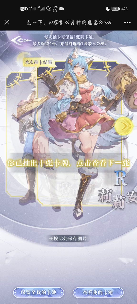 每次都是公测的时候我才知道游戏。然后游戏抽卡最后一天只能整一次。真呢是服了。也不知道是不是你们宣传不够还是咋了