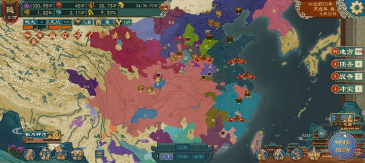 我觉得大周的策划是不是要考虑一下削减一下城市了?是不是有点儿太城市化了?这越打越累。如果像如果像别的游戏我希望是城市越多越好,反而大周这个游戏城市还是要精简一些,这城市太多了。对玩家一点利好都没有,反而越打越累,再加上南岭的地图再开,这城市更是多的不得了。我建议精简一下城市打的也轻松一点。不然的话每一次打到后期就跟那上班一样。