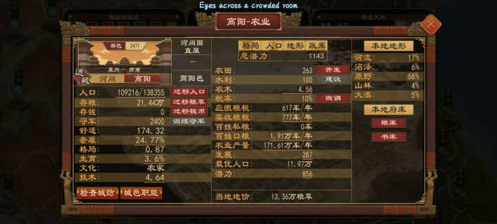 1.拓展卿室玩法,卿室家族成员赚到的俸禄可以用来招募部曲,部曲来源为游民,顺便延伸一部分事件……,卿室成员可以暗中贩盐赚取货币,再增加个巡盐御史也不是不行,最好直接改成统一用货币结算,不要再用粮草来结算了,直接发饷银,朝贡/结盟/联姻/宗室供养/军饷全部用货币替代粮草作为贡品,结盟补贴按盟友实力支付货币,提升外交成功率;国君只发钱不发粮,要吃饭自己用钱去买粮,然后再增加个漕运促进各个城池的货币流通