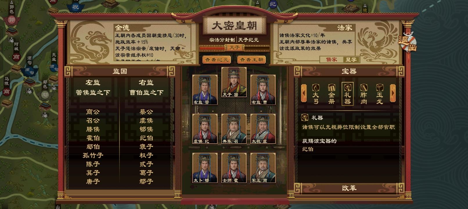 1、使者代巡:仁:有几率帮助被巡查国隐瞒一些罪名义:有几率帮助自己的母国隐瞒罪名信:被巡查国有几率隐瞒罪名,被发现后,天子获得被巡查国的罪名:欺下瞒上礼、疑:被巡查国巡查到罪名的几率增加智、痴:没变化慢、贪:被巡查国巡查到罪名后,有几率向天子宣战:清君侧2、外交(1)议和仁义礼智信:不变痴:和亲增加的成功率减少(10~14)疑:成功率小幅度减小(3~7)慢:成功率大幅度减小