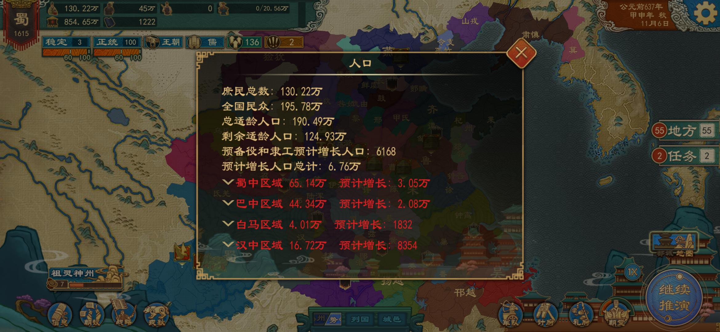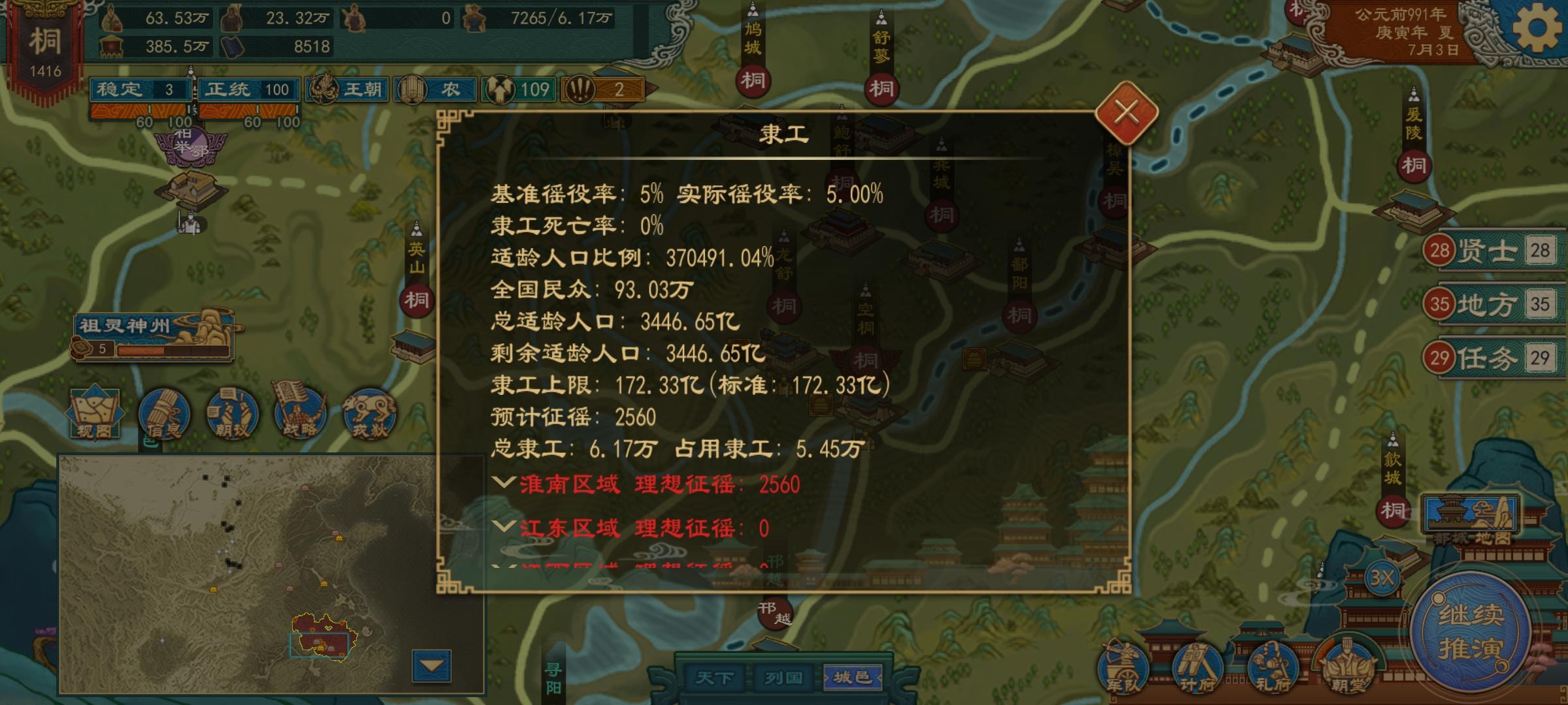 垦田令有个问题哈,就是农人需求和吏工。农人是什么?还有新版本人口机制改版后。我发现我有两百万人,显示适龄人口只有两万,这差距太大了吧。而且每年人口都在千人千人的减少,查询原因居然是因为人口迁移。也就是我国内人口都在外迁。可问题是国内一没有天灾人祸,而没有负生育,为什么?