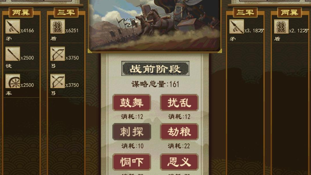 为什么一定要设定成我军先放技能,敌军再放技能?这样有时候会白白浪费我军的谋略。简单点,能不能做成我释放一次电脑紧接着就释放一次,然后我再释放,电脑再释放,一人一次,直到一方谋略用尽,另一方可以连续释放完复杂点,能不能把释放技能弄到战斗阶段中释放,战斗中随时点技能释放,电脑也是自己找时机释放,只对当前部队生效。这样的好处是多打一或者一打多时,多的那方就可以每个将领都可以释放技能了,不至于浪费,也