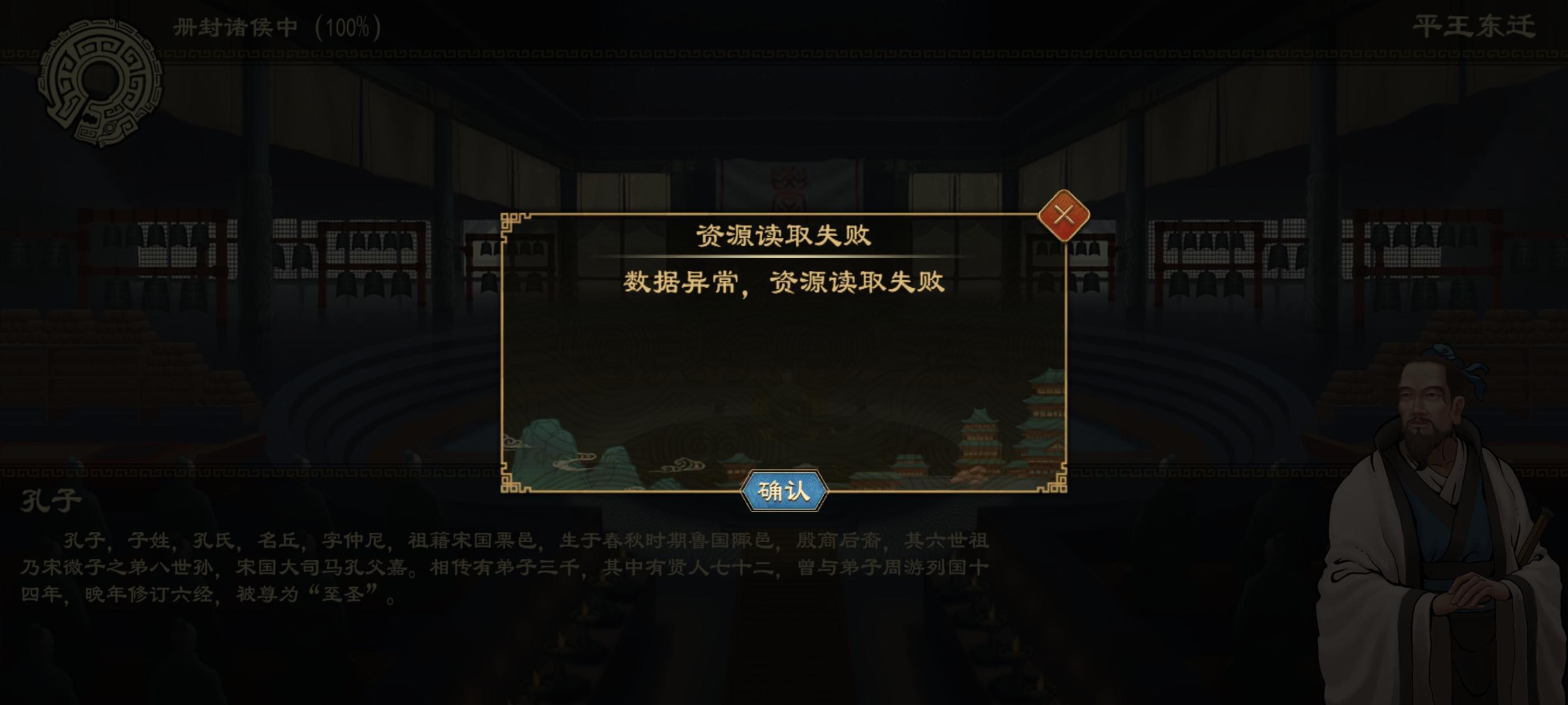 新版本更新后,本想进一个已经完成统一的老存档,方便体验新版本的国族阶段,但是在读取存档后显示数据异常,随后就弹出到了主界面,反复尝试还是不行,重新下载用来备份的云存档后也进不去,反馈一下这个问题