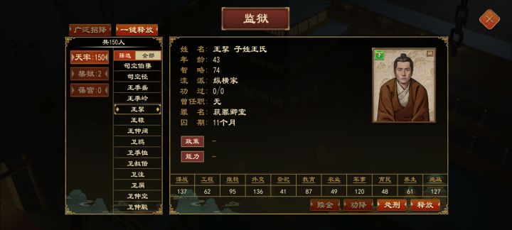 一个小建议,哦不,大建议!开局时能不能多个是否允许卿室间联姻的选项?或者,能不能出个秋后处斩的功能,每年询问是否处死囚犯。你看看,卿室间相互联姻,越生越多,求学时一大堆废材,关大狱还得一个一个处死,真的麻烦,本来监狱就是卡死重灾区总结:1,出是否允许卿室联姻功能 2,秋后处斩功能呼叫小龙,龙大爷