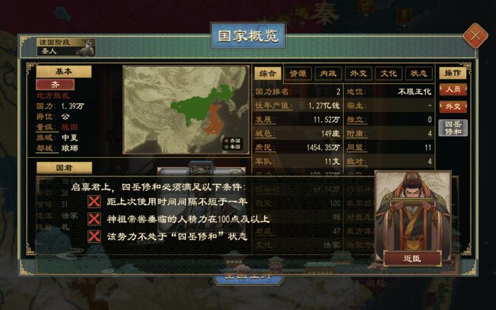 帝喾的四岳修和有点鸡肋,我明明给齐国和楚国都放上了,结果还是被齐国发上合纵了,楚国还能作为协战国来打我