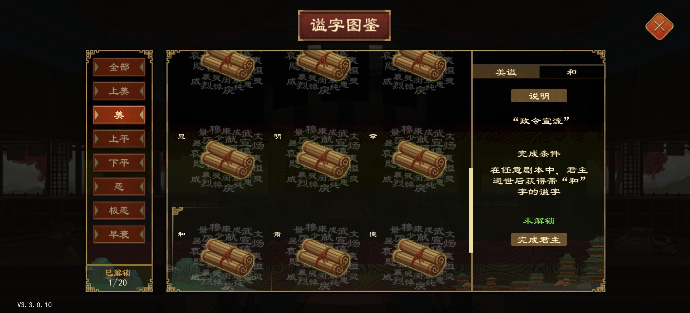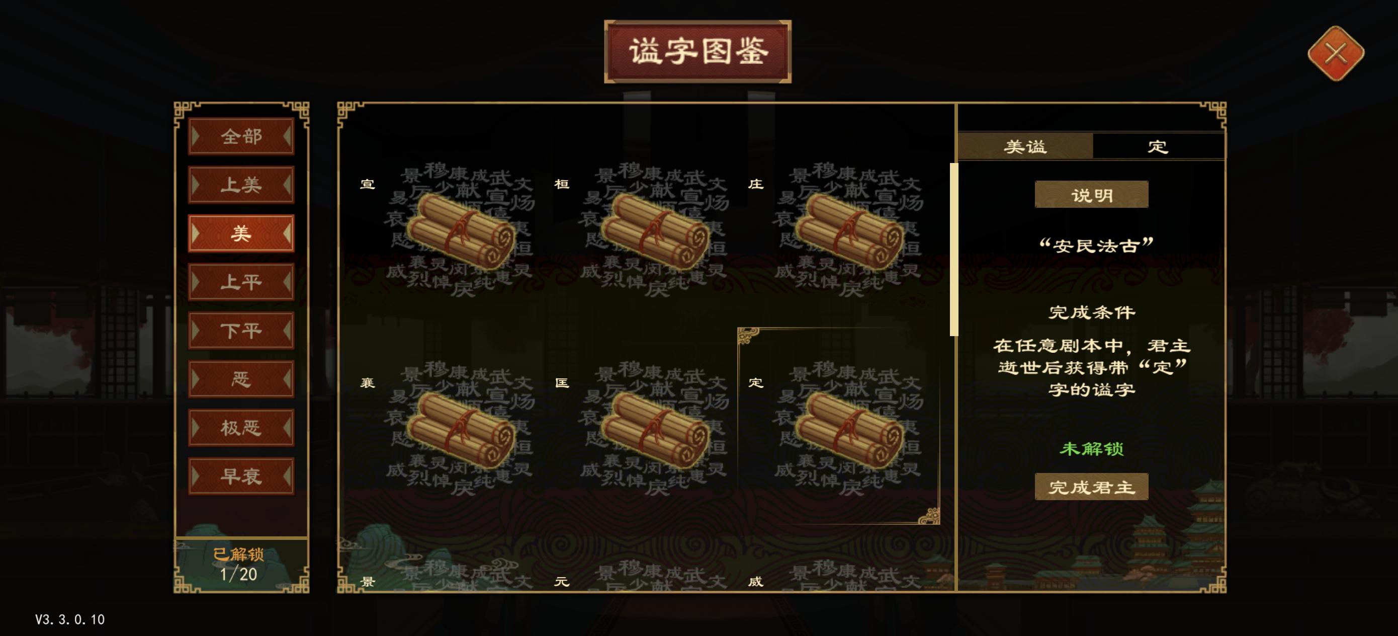 国君去世后获得谥号但图鉴无法解锁。