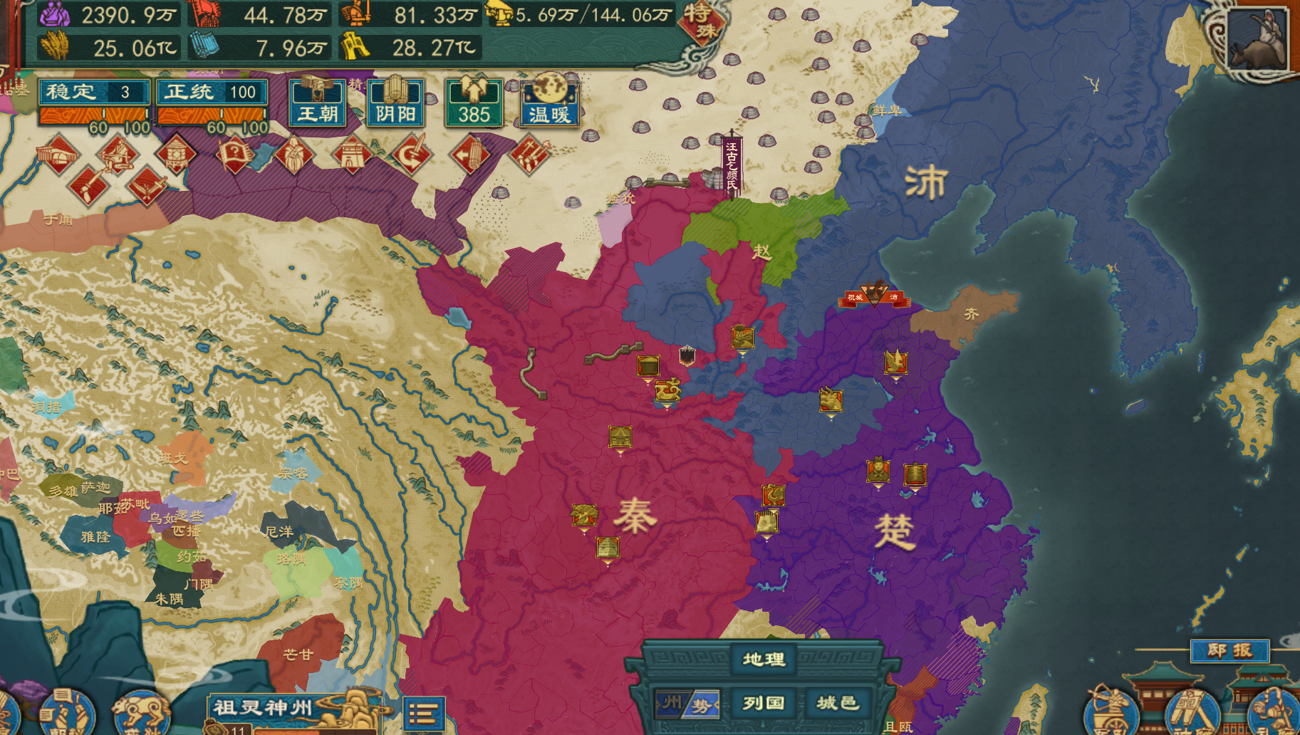 由于国内缺乏生产强弓所需要的漆胶,所以我就去其他国家购买了一些。但是在实际的排工中发现,除了国都的制弓坊能正常排工生产外,其他城市的制弓坊都缺乏原料。 如视频所示,根据提示将国都内的漆胶迁移到其他城市,但实际发现漆胶一直没运达目标城市导致无法生产,不知道是什么原因。