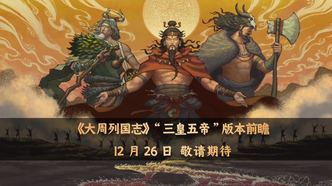 各位君上: 本次更新将上线全新上古剧本、多种全新玩法,「三皇五帝」版本预计将于12月26日10:00上线。 一、全新剧本包——上古剧本包 本次更新将推出全新剧本包——上古剧本包,其中包含剧本:满天星斗、涿鹿之战、共工争帝、三苗四凶,在这个充满神话色彩的时代中扮演一位雄心勃勃的首领,引领部落征战四方,书写属于你的传奇。 二、全新系统 阶段系统 新增阶段系统,对应历史阶段包含:先民阶段(炎黄舜尧时代)