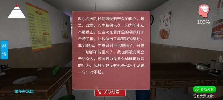 温馨提示:1.全程无高能,放心玩就好。2.厨房钥匙在啤酒架子的右下角位置。3.还有闹不清楚的,留言交流( •̥́ ˍ •̀ू )目录:一、物品图鉴二、关联公式三、重要物品线索图一、物品图鉴二、关联公式1.兼职:老板娘,菜刀指纹,一张纸,学生证,一封信,记账本2.当众嘲讽:赵小龙,兼职,挣扎的痕迹3.我已经死了:时钟,案情记录4.扶我的人:呕吐痕迹,一枚扣子,围裙5.神秘
