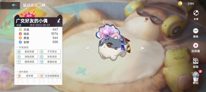 我不理解,这都歪了。幼崽的时候尾巴颜色正确,耳朵颜色正确,身上颜色正确,还有两条装饰,以为这波稳了,特地费了很多资源练了好几个英雄,还开了养猫月卡,结果就歪了。心里真不是个滋味。