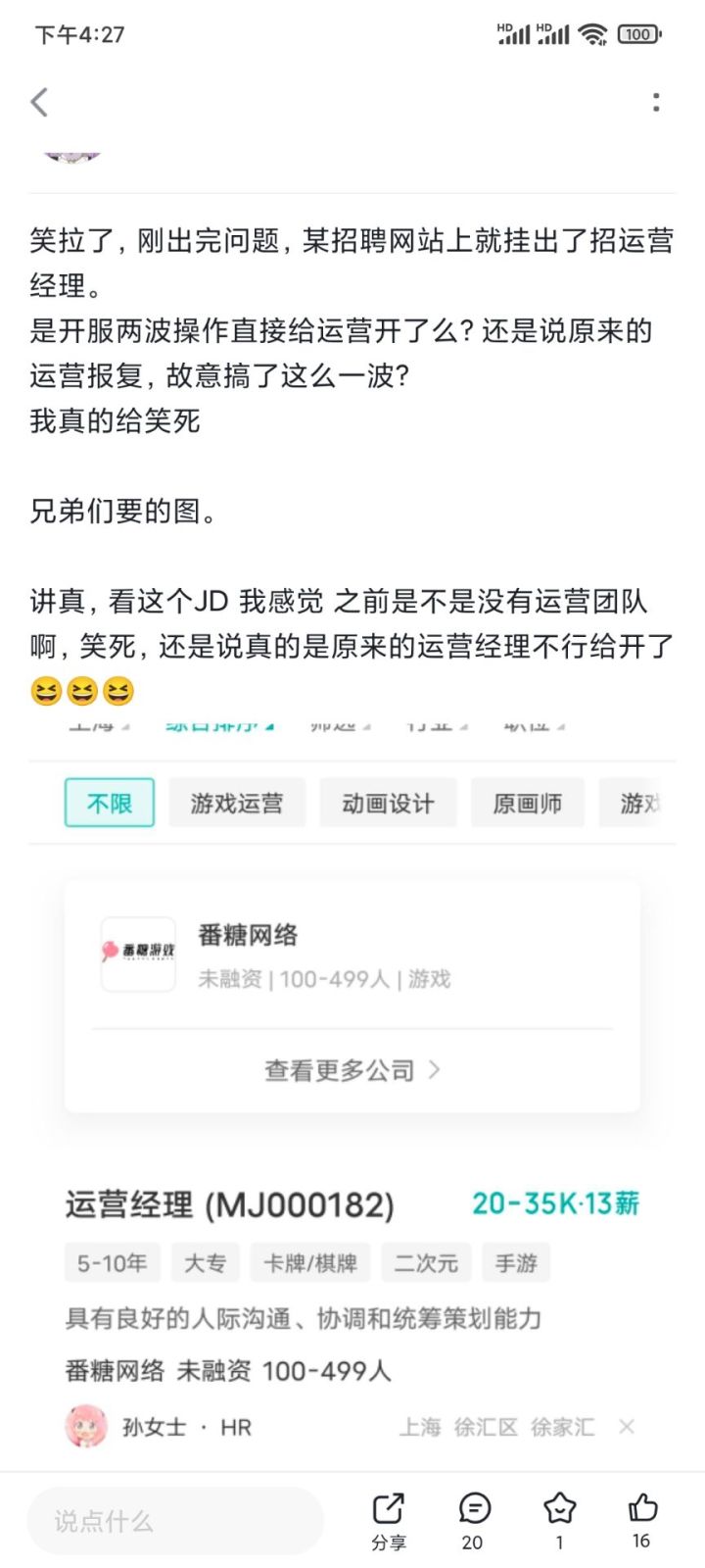 这官方能处,我已经在论坛看了三天乐子了。今天上午没那么多人骂,有点无聊,下午直接搞这么一出,又有乐子了