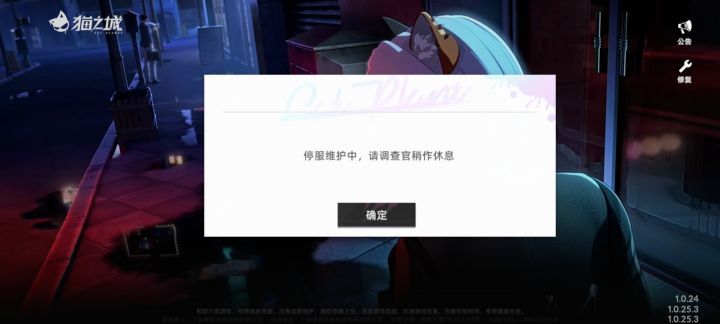 亲爱的调查官: 部分调查官反馈的邮件获取异常情况。制作组将紧急停服对相关问题进行排查和解决。维护期间各位调查官将暂时无法进入游戏。 对于本次维护带来的不便你们自己看着办。我们深表随意。还请调查官们相互转告。等待维护完成。维护完成后,我们将以公告形式告知各位何时停运!特奖励金币*200 感谢调查官们的支持和谅解! 《猫之城》制作组 2022年7月31日官宣!
