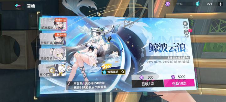 晚上十二点半攒够十连就抽了,本来差17次第二次保底,结果出了两张新卡,一紫一金,非天是活动给的,可以满觉,后期有资源就拉满她,毕竟比基尼!图鉴收集完成了!接着攒资源抽最后一个艾可泳装鱼图鉴和收藏图鉴满了,1400杆