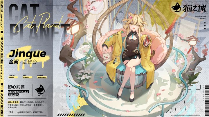 【武装档案录入】初心武装:金雀台「你到底是何方神圣,竟能打破金雀台之封印?!」她曾与传说中汇集天下奇珍的巨大宝库「金雀台」,一同埋葬在了历史的余烬之中。深埋于地下,困于纯金打造的墓穴之中,岁月从未分明。十年?百年?或是千年?究竟过了多久?金阙并不清楚。她只知道,时至今日,她仍未数尽库中的宝物。