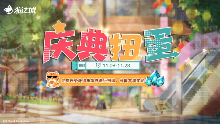 ★活动「庆典扭蛋」即将开启★1.活动时间2023年11月09日——11月23日 04:592.活动说明活动期间完成任务,参与扭蛋,即可领取猫眼石等丰厚奖励!更多详细信息请见《猫之城》游戏内公告、官网及官方自媒体账号。