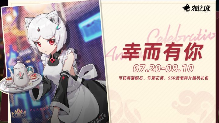 ★周年感谢信「幸而有你」即将送达★感谢相伴,幸而有你。1.活动时间2023年7月20日 5:00-8月10日 4:592.活动说明周年庆登陆游戏即可领取大量奖励!更多详细信息请见《猫之城》游戏内公告、官网及官方自媒体账号。—————————————☆欢迎调查官入驻《猫之城》!猫咪即正义,情绪即力量!【猫之城】官方资讯平台:①官网:②官方微博:③官方微信公众号:搜索“猫之城”