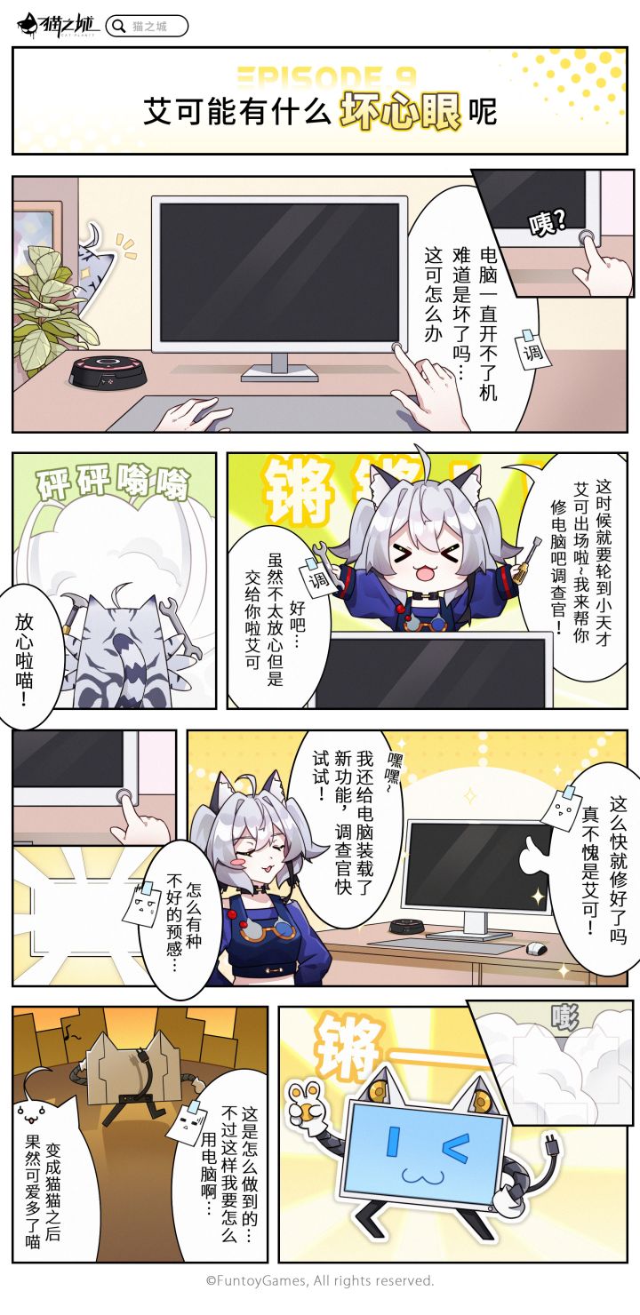 「第九话丨艾可能有什么坏心眼呢」电脑出问题了?就交给小天才艾可吧!☆《猫之城》全平台预约已开启,前往官网预约()即可获得专属预约成就奖励!【猫之城】官方资讯平台:①官方微博:②官方微信公众号:搜索“猫之城”③官方B站:【猫之城】官方粉丝交流群:①群:②群:③群:(>ω・* )ノ期待与您在新海市中相遇哟~