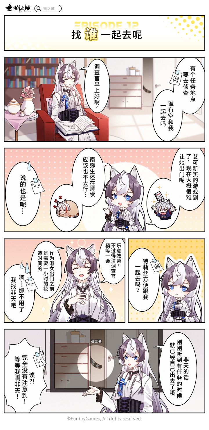 「第十二话丨找谁一起去呢」想要一起去侦查任务地点,可是大家好像都更想做自己的事?毫无威严的调查官与自由的猫猫们!☆《猫之城》全平台预约已开启,前往官网预约()即可获得专属预约成就奖励!【猫之城】官方资讯平台:①官方微博:②官方微信公众号:搜索“猫之城”③官方B站:【猫之城】官方粉丝交流群:①群:②群:③群:(>ω・* )ノ期待与您在新海市中相遇哟~