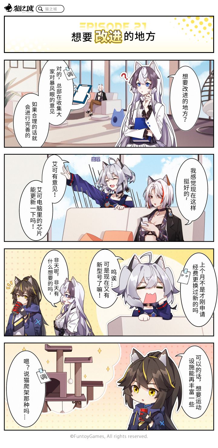 「第二十一话丨想要改进的地方」“这都是训练作战人员能力、守护新海市社会秩序的重要运动设施,不能省的!”调查官一边说着,一边迅速下单了猫爬架。——————————————☆《猫之城》全平台预约已开启,前往官网预约()即可获得专属预约成就奖励!【猫之城】官方资讯平台:①官方微博:②官方微信公众号:搜索“猫之城”③官方B站:【猫之城】官方粉丝交流群:1群:(已满)2群:(已满)