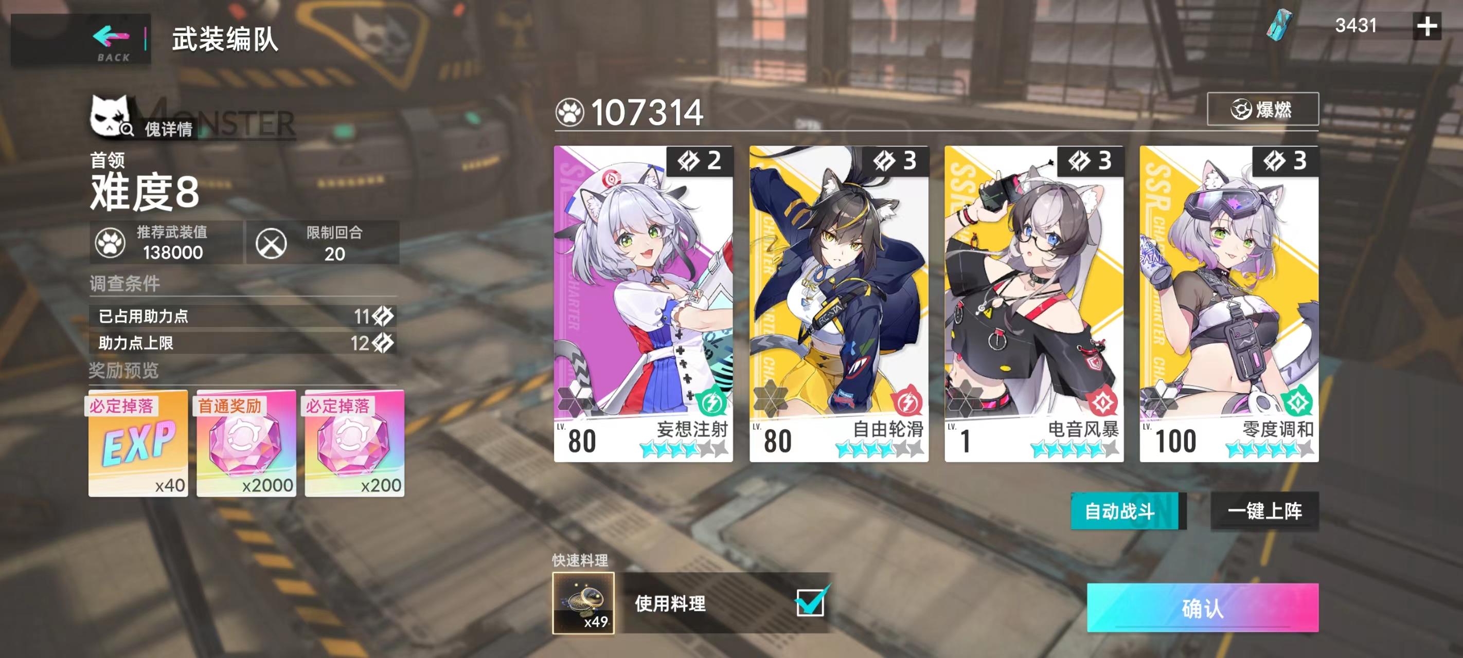 打到塔8才知道,原来助力点是打小怪能叠加的,一直三个角色死肝到8层!!!