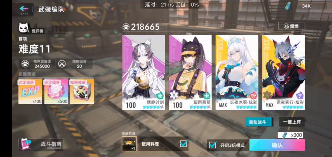 武装值全靠安雅支撑,伊德的练度我自己看了都摇头,好在没什么翻车的风险,恬静2觉,细雨六觉,安雅二觉,伊德0觉