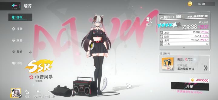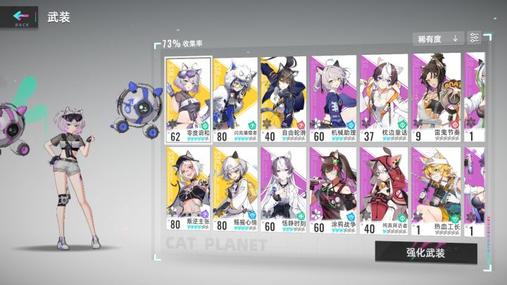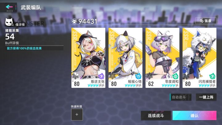 没有进行过内测的小伙伴,个人开局强烈建议抽取"电音风暴",她的群攻能够满足你对群攻伤害的变态向往,同时"零度"也是群攻而且up!阵容"电音+零度+涂鸦战争+恬静"让你在"爬楼"=绪能采集时轻松到达六十几层不是梦想!"妄想注射"是一个很神奇的角色(一星的技能,恐惧的几率居然高大"75%",二星直接"100%"),这就很离谱了,在"涂鸦采集"打不过的小伙伴不妨试试,真的可能会有奇效……本人小氪六元,拿了个首充礼包……卡池除了"英雄憧憬"也就没有什么欲望了……但是没有up!o>_<o"滑板鞋"和"叛逆"我个人更加倾向于"叛逆",因为那个电痕效果加上群攻技能……就很无解……可惜"叛逆"我才抽出来T^T……没资源养了o>_<o,只能花两天时间把练度提上去,才好发挥阵容的强度……别问我"涂鸦战争"和"防爆者"哪个跟好用……我个人觉得因人而异,"防爆者"肉防皆高,给队友加盾加防,但是输出是真的不够;"涂鸦战争"嘲讽血厚,输出不低,但小伙伴们,有些怪或者boss,它无视嘲讽!而且群攻技能也不少!我个人比较倾向于"防爆者"……我没用主要是我没抽到T^T……我玩了这个游戏,内测加公测……总结就是,不要太在意强度……我们毕竟是来撸猫的╭(╯ε╰)╮,不要在意那些什么强度排行……阵容没有最强的,只有最合适的⊙▽⊙!我分享攻略主要是为了让小伙伴们更加轻松的撸猫,没有其它意思o>_<o加油吸猫吧!