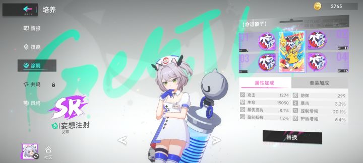 ②其他三个不打输出只求活着,所以把加血量和防御的两个涂鸦拉满。
