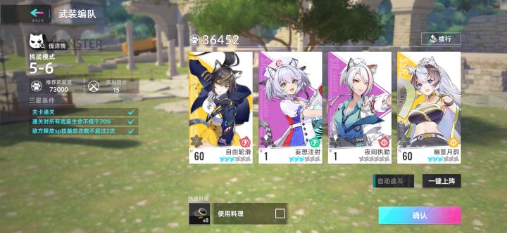 挑战5-6刚到25级,推完主线的材料全升幽篁了然后欧了一把,BOSS全程控住妄想+夜间BOSS全是攻击的时候用妄想的恐惧有增益(即套盾)就用夜间的眩晕靠滑轮和幽篁打伤害