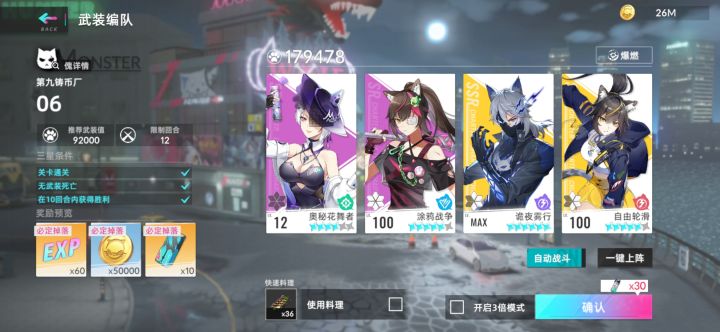 给大家说一个我昨天各种尝试找到的最舒服的通用阵容公式吧,记住,是通用阵容,而不是以某些卡为核心的体系阵容,优点就是可以应对绝大多数环境,直接点自动就能过本,缺点也明显,极端环境里上限不高群攻+单体+奶+辅助(以获取简易度推荐具体角色)群攻推荐:调和或小红帽,企鹅获取难度太大单体推荐:小狼,像是幽篁或者别的啥单体也行,但是小狼新手池必得奶:就用送的那个大口奶,忘记叫啥了,后面可以换送的ssr