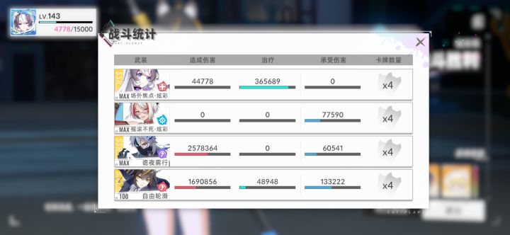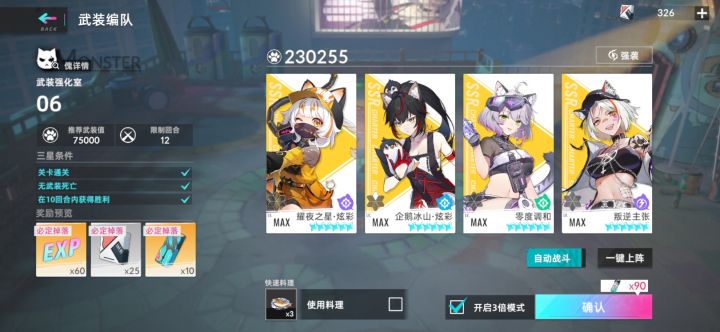 通通四个回合爆杀涂鸦:三黄金补给(1金1紫1蓝脸黑)一猪(企鹅机械心脏更好)食物:全队加sp手法,发现卡屯企鹅三星b,第四回合爆发,场外大,小音大吞噬三星卡,企鹅两张三星b。30关后面通通四个回合,40关带的猪差了点伤害,打了5回合
