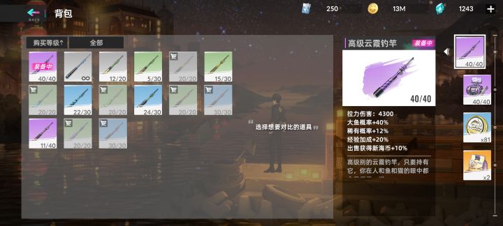 且两个渔场最高级的钓竿需要花费猫眼石购买