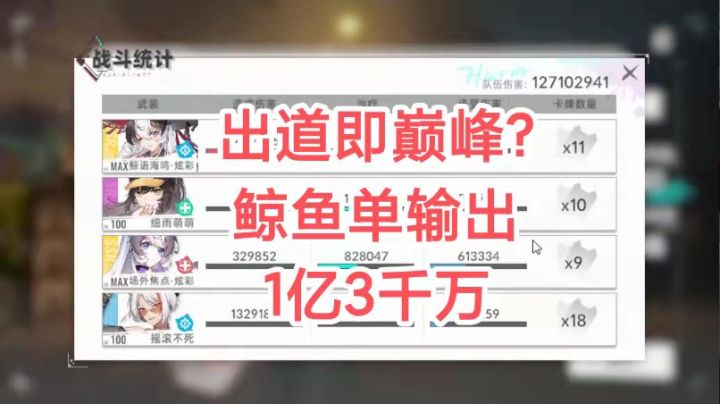 出道即巅峰?鲸鱼单输出1亿3千万https://www.bilibili.com/video/bv1tG4y1k7cB