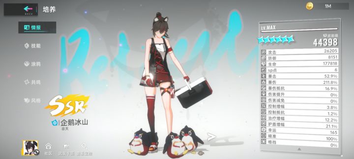 啊,爬塔通关了,我觉得我练度挺低的,企鹅暴击不到60,瑶瑶26W血。