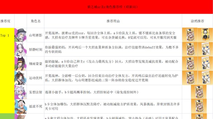 新版本SSR角色强度榜一图流V2.0