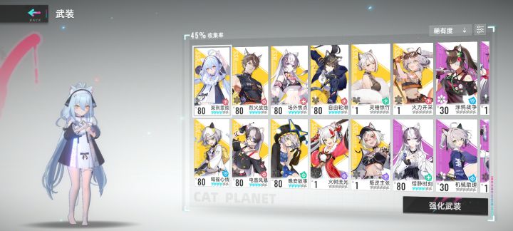 Hello大家好,这里是特莉丝后援会,咱不仅是后援会还能产攻略~这期攻略我们将详细介绍猫之城中武装、也就是角色的养成内容,以及大家最为关心的抽卡部分,希望大家喜欢~那么话不多说,我们正式开始~本期内容文案:Sama Along首先了解一下猫之城的武装,猫之城的武装有四种职业和五种属性,其中职业代表武装的基本定位,有防御型、特殊性、输出型和辅助型四种。防御型是拥有较高生命值与防御力、大多拥