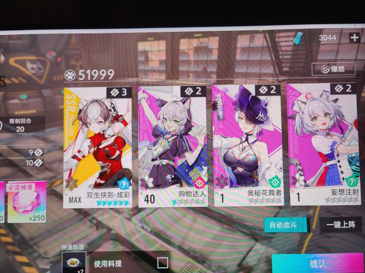 提醒:该阵容越战力打本需要全程手操,喜欢全程挂机的可以略过了。(手操才是乐趣所在,自动的ai太呆了)该攻略不需要一张抽出来的ssr就可以保你全程无忧。首先,游戏送的十次十连抽,随便抽,捡你运气最好的那一波就行。关键牌是妄想注射(打涂鸦的key牌)套装用命运骰子,夺取sp在关键时刻有时来运转的功能!然后邮箱和前期主线给的绪晶需要抽到以下几张卡。加上妄想是两sr两r卡,我相信不难抽。(我怎么记得