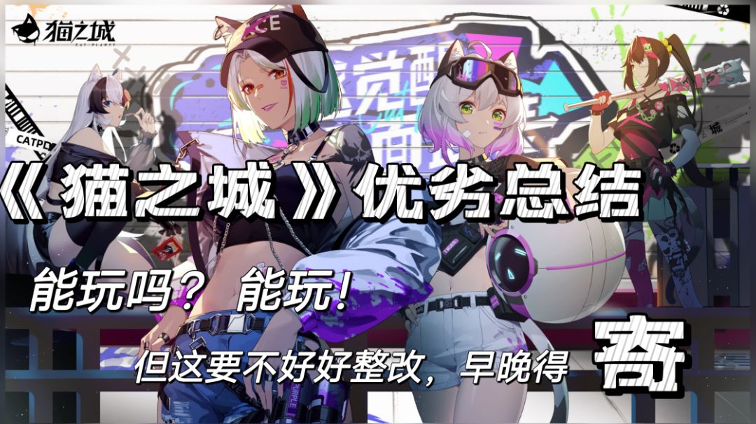 省流:3分40秒看总结 《猫之城》作为一款集猫娘、养猫的养成类rpg手游而言,游戏可玩性相对较高:抽卡、养成、技能卡牌释放、养猫以及各种高难度关卡和玩法; 游戏美工优秀:pv画风炫酷、猫娘好看、猫咪呆萌; 但槽点过多:ssr猫娘出货率低、部分关卡容易卡关、不氪但是很肝、养猫部分内容过于繁琐、没有扫荡(重复的战斗过程无法跳过)、优化问题欠佳(bug、外挂等)。 这样的数据,对于百万预约,只能说是期望过高了,但玩总归是能玩的,属于中等水平,希望《猫之城》后期能总结整改,期待后续会有更好表现吧。