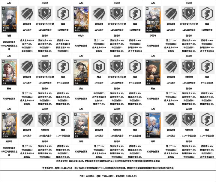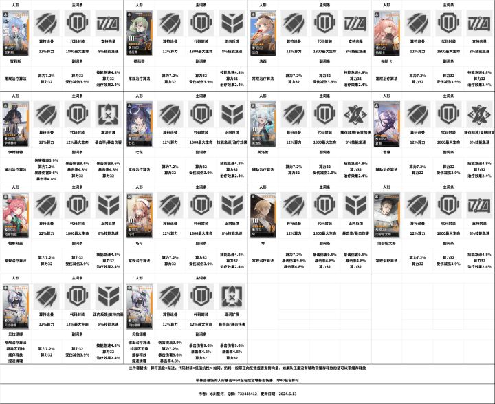 看老是有萌新问角色算法带什么,如图。