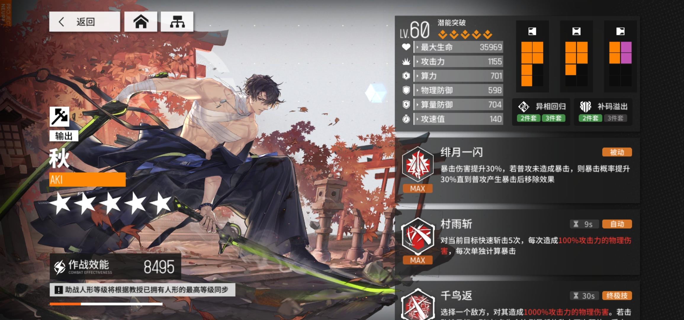后面带三个奶妈,我只有四星60级帕斯卡,三星30级七花(就为了一个大招不死,增加容错率),三星50级芙洛伦(大招富裕可以考虑给秋来个大)就我这垃圾配置,通了4章400层。可惜,过了明天就不行了,这直接削异想回归,我这个养秋(猪)流就算是废了。我是忘了截图了,秋的输出一般都在90%以上。