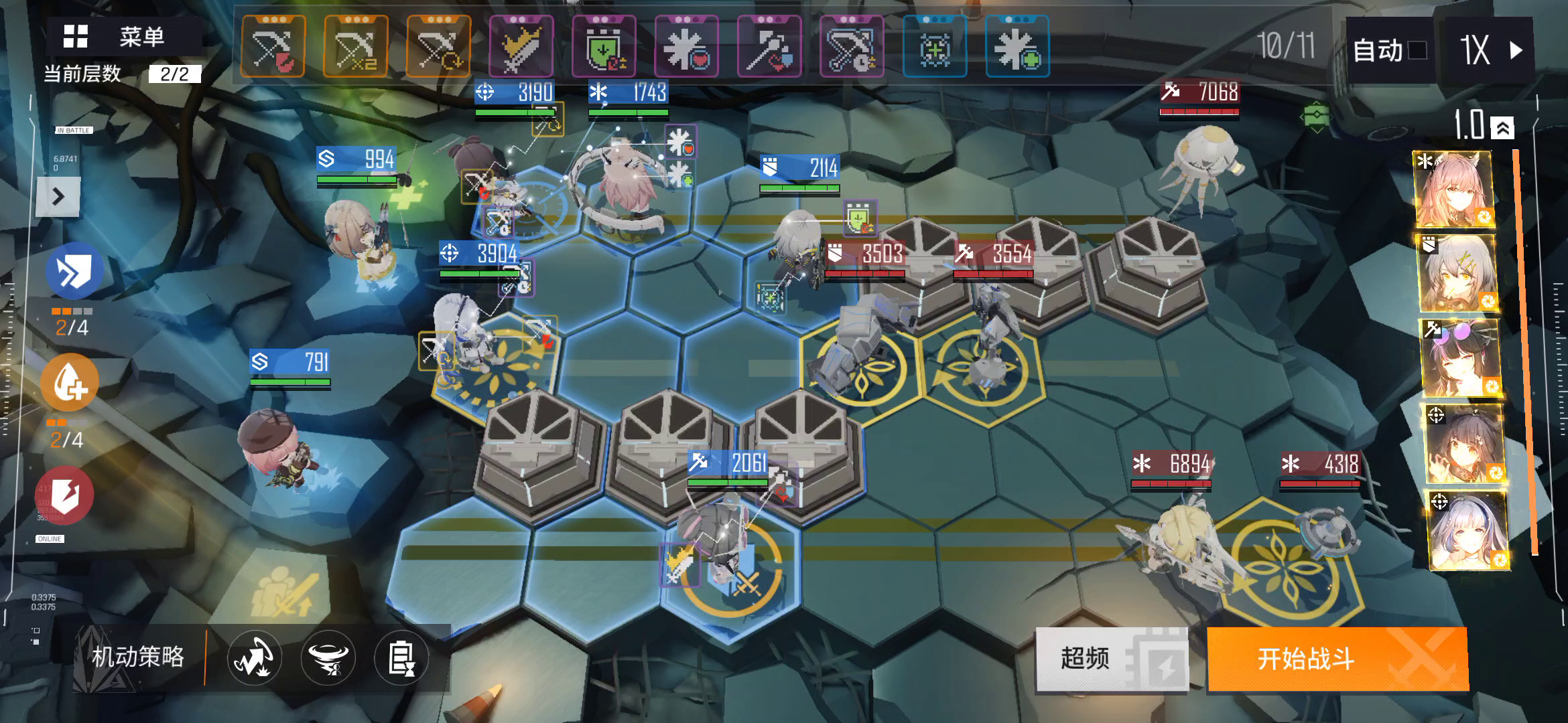 前半段都是瞎打的 后半段才是精髓 这个爱的ai真的太憨了23333 占着中间的格子不动 这个基本只需要一个赫波和一两个个工具人就可以 后面的奶没太大必要 注:薇如果不站在下面的话爱会从下面偷你赫波 而且赫波不能站在狙击格 如果狙击格有人的话爱不会走到中间