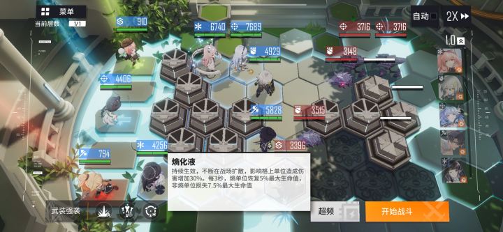 名字叫熵化液正常人理解应该是在这格子里面会被熵化吧,也就是你下面的熵单位吧那你告诉我,每三秒熵单位回复5%血量哪里去了,为什么站在熵化液格子上的角色在持续扣血?