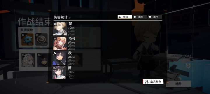 出现bug了,一点作战开始就结束了,我的各个角色输出为零,boss被我狙击队打了还剩1/5血,换队伍就这样了,薇是借的