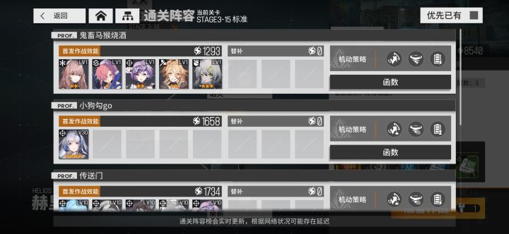 通关阵容里全是挂,也不管?图为3-15推荐8750的通关阵容。