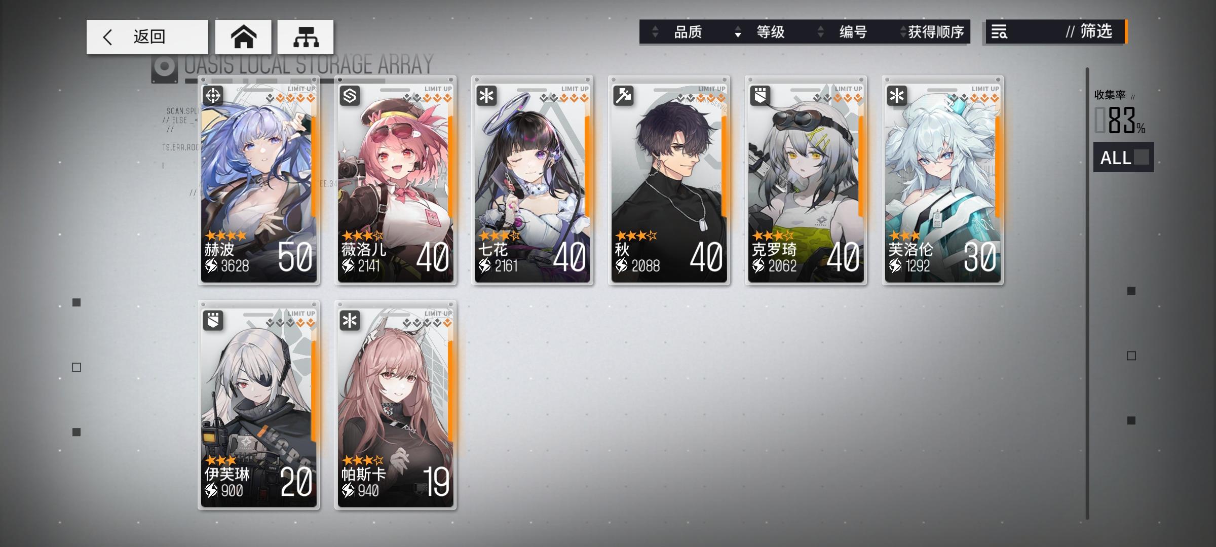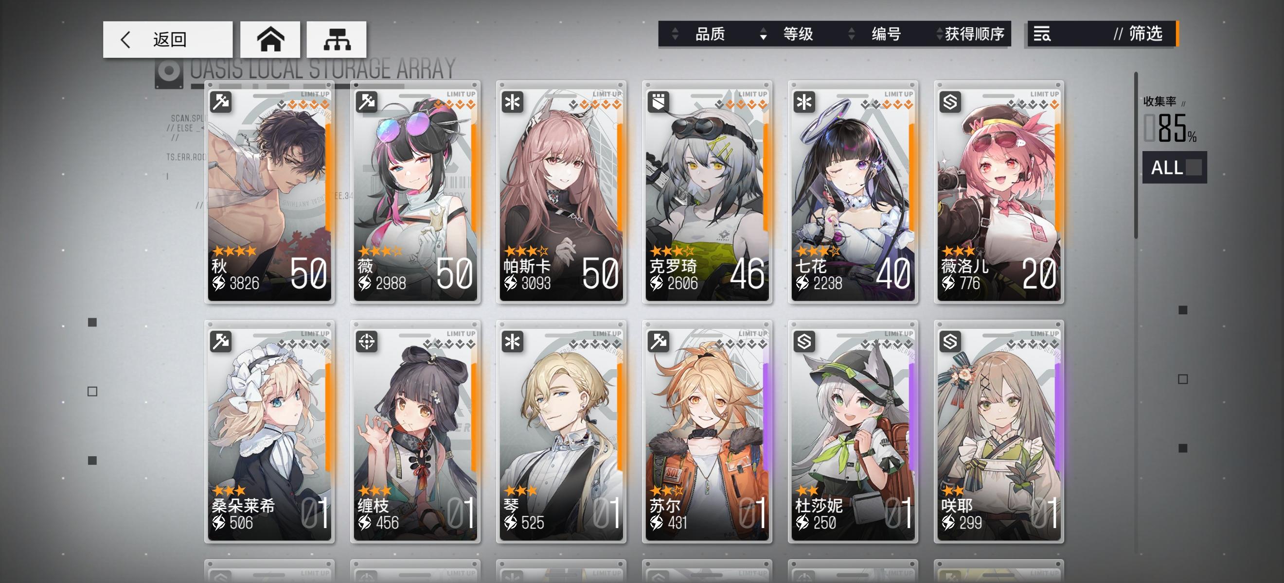 有一说一,这游戏对微氪和零氪还算蛮友好的,到现在也就氪了个六块,但是角色收集度已经93了,还差两个三星奶以及三星特种没抽到,只要后面没有阴间运营玩下去估计没有问题,赫波yyds!