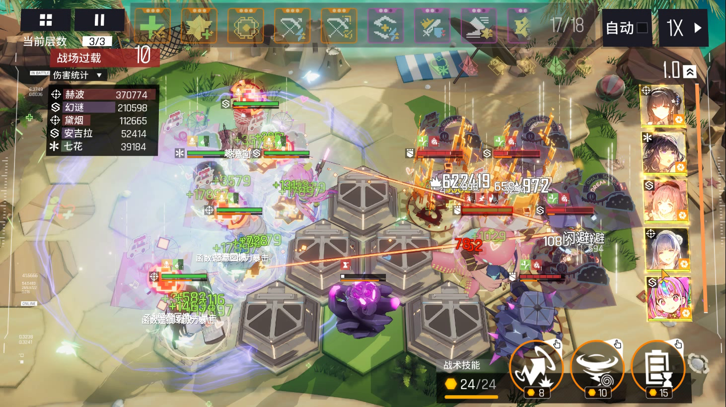 以前毒奶队在函数成型前很容易吃瘪,现在有了幻迷就完全不一样了,前期可以随便浪了基本。 tip:战略技能的集火可以让幻迷的章鱼移动,所以如果遇到了章鱼拉不到怪的情况,可以适当更改战术技能使用集火,安吉拉的大招和莉丝的大招也有同样的效果。