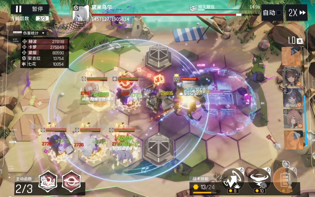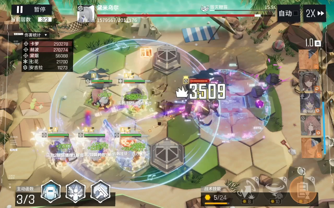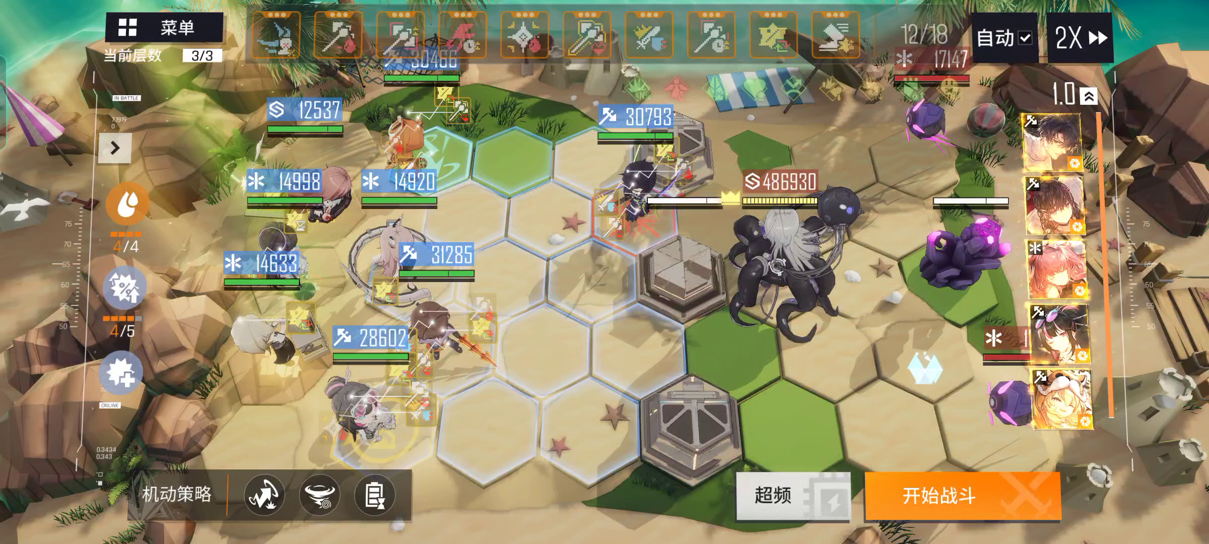 战士队打只有两层的章鱼哥还是打不过的,输出不够。但是只要有了发育空间,选到了函数,莽就完事了。