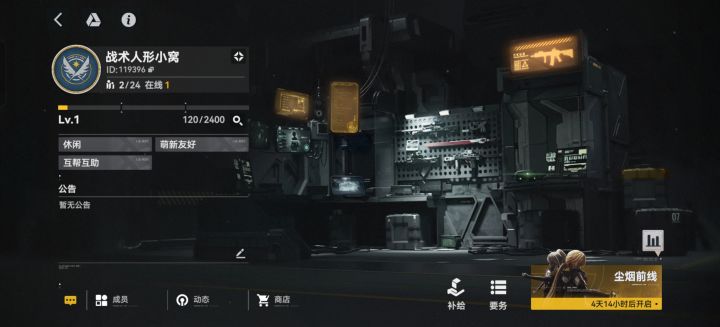 现在我们班组招收两位活跃小伙伴,不卷排名,尘烟只要每天两刀自动就行。现在班组可以稳定在前2%,拿完所有奖励是稳稳的,有班组群可以吹水,快来一起玩耍口牙!班组id100079