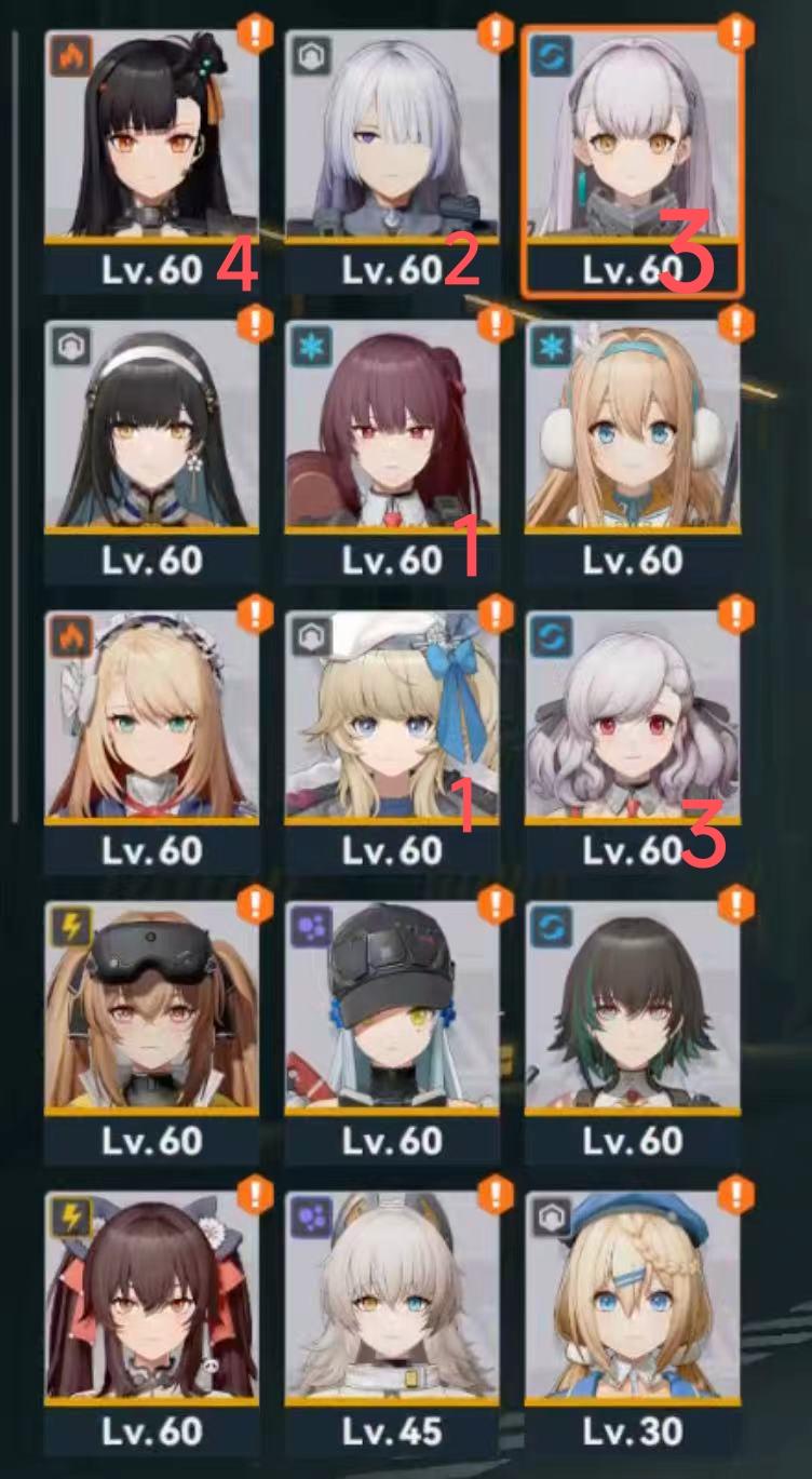 开服时候玩过几天,现在有这些人形,我是先用这几个角色过渡等强力人形allin还是平铺属性队啊?还有我这几个火角色优先练哪几个可以用来过渡,我看这几个人形都有跃键