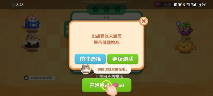 点不了继续游戏,一直玩不了,点开始挑战就一直弹未满员,咋整