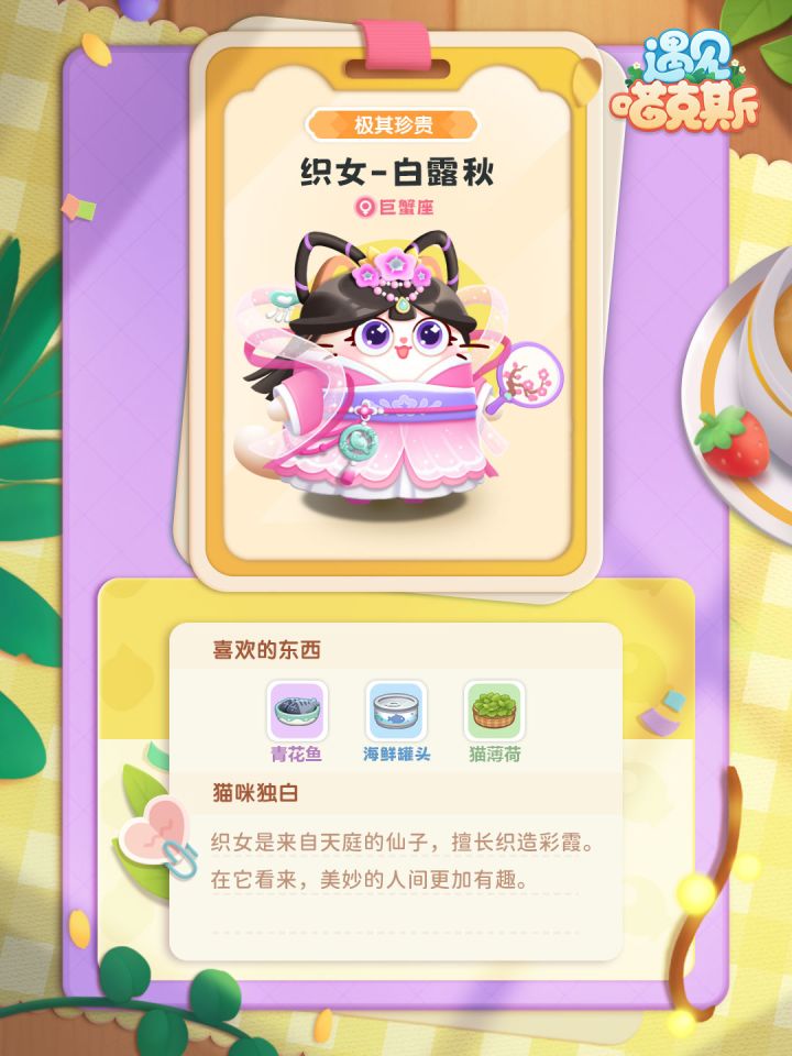 各位设计师们,让大家久等了!是的,我喵克斯,世界上唯一的“主角喵”(。◕ᴗ◕。)本周的喵克斯快讯来啦!这次依然给大家带来喵岛上可爱的小伙伴们,请大家搬好小板凳坐好哟!首先第一个登场的是【微乐】介绍:最擅长的是变戏法,猫咪宝宝们都非常喜欢它,每当它出现在街头巷尾的时候,总要请求它来一场戏法表演星座:狮子品质:十分稀有接着登场的是绒绒。介绍:总是少女心满满,喜欢一切粉红色的可爱事物,对